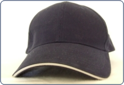 Boné em sarja aveludada com vivo na pala, de 6 gomos, regulador de fivela metálica.